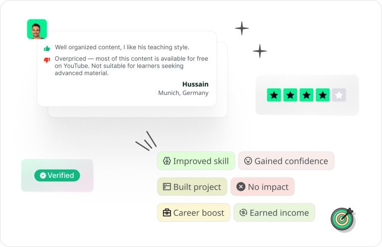 Reviews say “amazing content!” but never show actual results. Did anyone land a job? Build a business? You’ll never know.